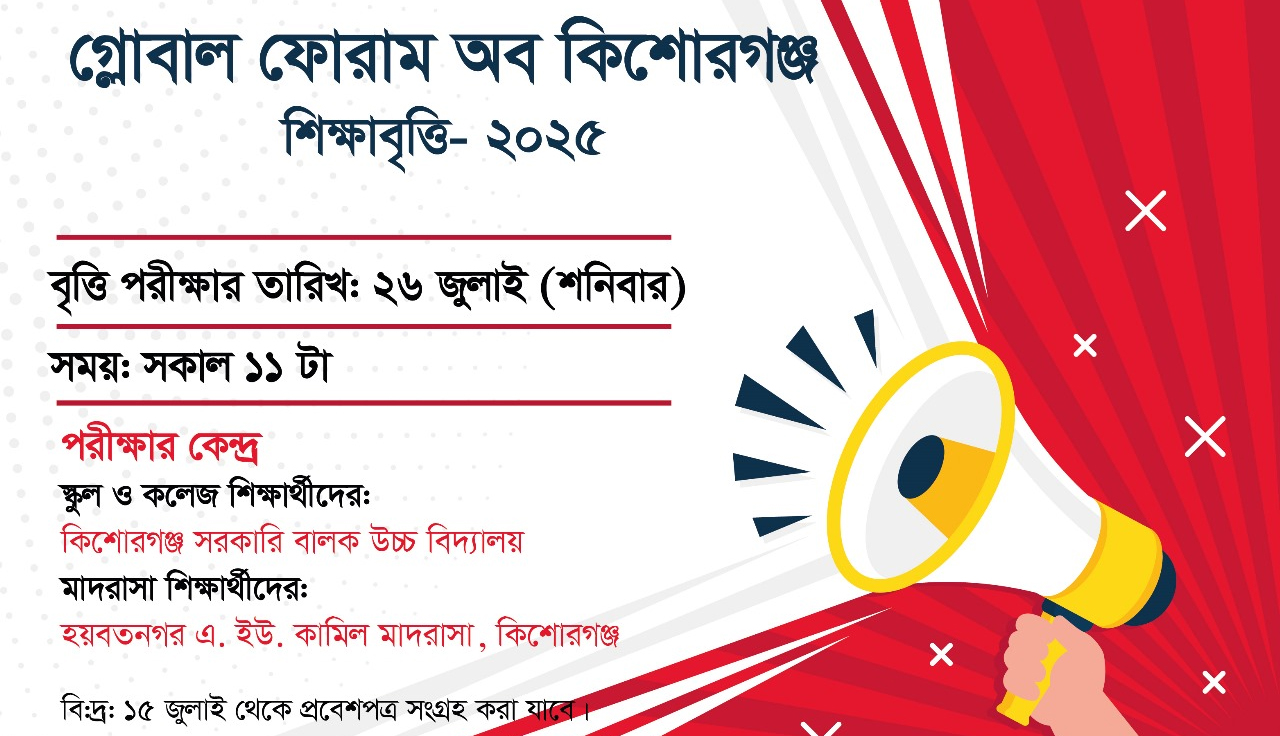 ২৬ জুলাই অনুষ্ঠিত হবে গ্লোবাল ফোরাম অব কিশোরগঞ্জের বৃত্তি পরীক্ষা