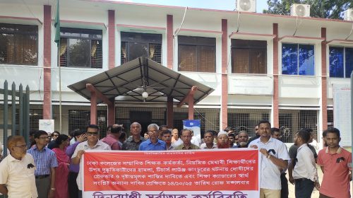 ঢাকা কলেজের শিক্ষক, কর্মকর্তা ও নিয়মিত শিক্ষার্থীদের ওপর দুষ্কৃতিকারীদের হামলা এবং টিচার্স লাউঞ্জ ভাঙচুরের ঘটনায় জড়িতদের গ্রেফতার ও দৃষ্টান্তমূলক শাস্তির দাবিতে দেশব্যাপী কর্মসূচির অংশ হিসেবে কিশোরগঞ্জের গুরুদয়াল সরকারি কলেজে দিনব্যাপী…