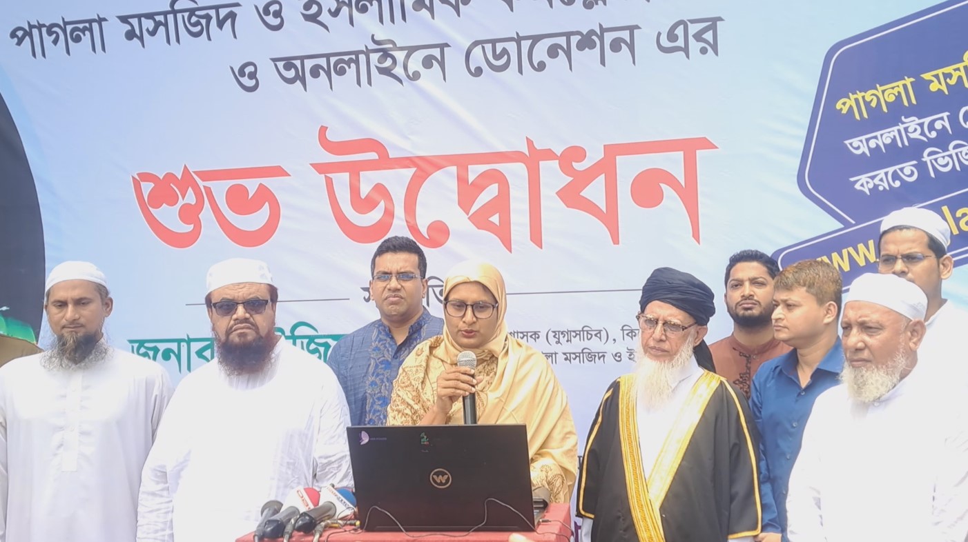 কিশোরগঞ্জের ঐতিহাসিক পাগলা মসজিদে এখন থেকে ঘরে বসেই অনলাইনের মাধ্যমে দান করা যাবে। দেশ-বিদেশে থাকা ধর্মপ্রাণ মুসল্লিদের সুবিধার্থে চালু করা হয়েছে 'পাগলা মসজিদ ও ইসলামিক কমপ্লেক্স'-এর অনলাইন ডোনেশন ওয়েবসাইট (www.paglamosque.org)। শুক্রবার (৪ জুলাই) বেলা ১১টায় মসজিদ চত্বরে নতুন এই ওয়েবসাইটের আনুষ্ঠানিক উদ্বোধন করেন কিশোরগঞ্জের জেলা প্রশাসক ও পাগলা মসজিদ কমিটির সভাপতি ফৌজিয়া খান। উদ্বোধনী অনুষ্ঠানে জেলা প্রশাসক বলেন, "সামাজিক যোগাযোগ মাধ্যমে পাগলা মসজিদের নামে বিভিন্ন প্রতারকচক্র সাধারণ মানুষের কাছ থেকে প্রতারণার মাধ্যমে টাকা হাতিয়ে নিচ্ছে। অনেকেই দান করতে চাইলেও নির্ভরযোগ্য মাধ্যমের অভাবে দান করতে পারছিলেন না। তাই মানুষ যেন প্রতারিত না হয় এবং ঘরে বসেই নিরাপদে দান করতে পারে—এই উদ্দেশ্যেই এই অনলাইন ডোনেশন প্ল্যাটফর্ম চালু করা হয়েছে।" যারা দান করতে আগ্রহী, তারা এখন থেকে www.paglamosque.org ওয়েবসাইটে প্রবেশ করে মোবাইল ফিন্যান্সিয়াল সার্ভিস ও অনলাইন পেমেন্টের মাধ্যমে সহজেই দান করতে পারবেন। এছাড়াও উদ্বোধনী আয়োজনে অতিরিক্ত জেলা প্রশাসক মিজাবে রহমত, বাংলাদেশ জামায়াতে ইসলামীর কেন্দ্রীয় মজলিসে শূরা সদস্য ও কিশোরগঞ্জ জেলা আমীর অধ্যাপক রমজান আলী, ইসলামী আন্দোলন বাংলাদেশের…