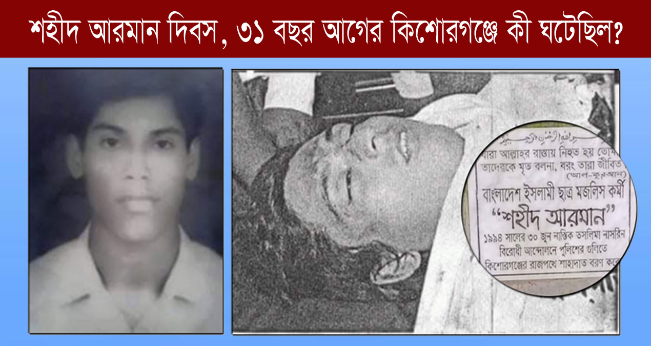 আজ ৩০ জুন, শহীদ আরমান দিবস। ১৯৯৪ সালের এই দিনে কিশোরগঞ্জ শহরের রাজপথে ইসলামী মূল্যবোধ রক্ষার আন্দোলনে পুলিশের গুলিতে শহীদ হন স্কুলপড়ুয়া তরুণ আরমান। দেশের নাস্তিকতা ও ধর্মবিদ্বেষের বিরুদ্ধে আন্দোলনে…