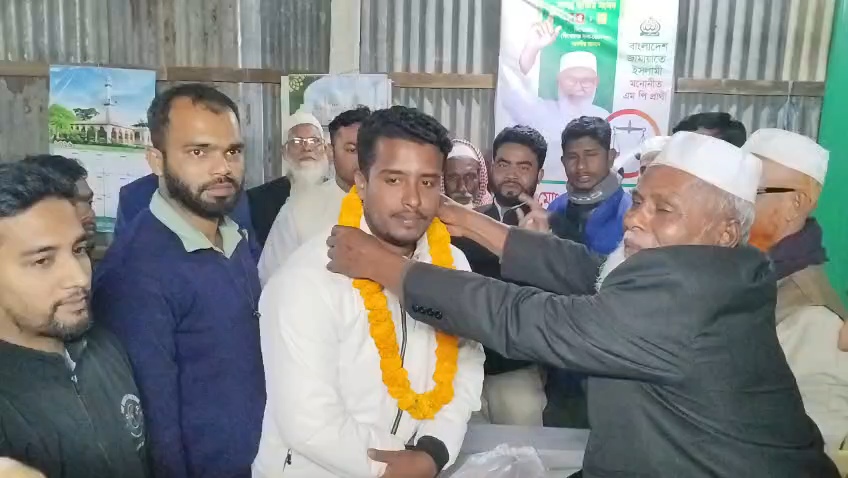 অনুষ্ঠানে উপজেলা জামায়াতে ইসলামীর আমির আমীনুল হক নবাগতদের ফুলের মালা দিয়ে বরণ করে নেন।