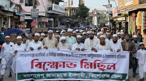 গোপালগঞ্জে এনসিপি নেতাদের ওপর হামলার প্রতিবাদে কিশোরগঞ্জে জামায়াতের বিক্ষোভ