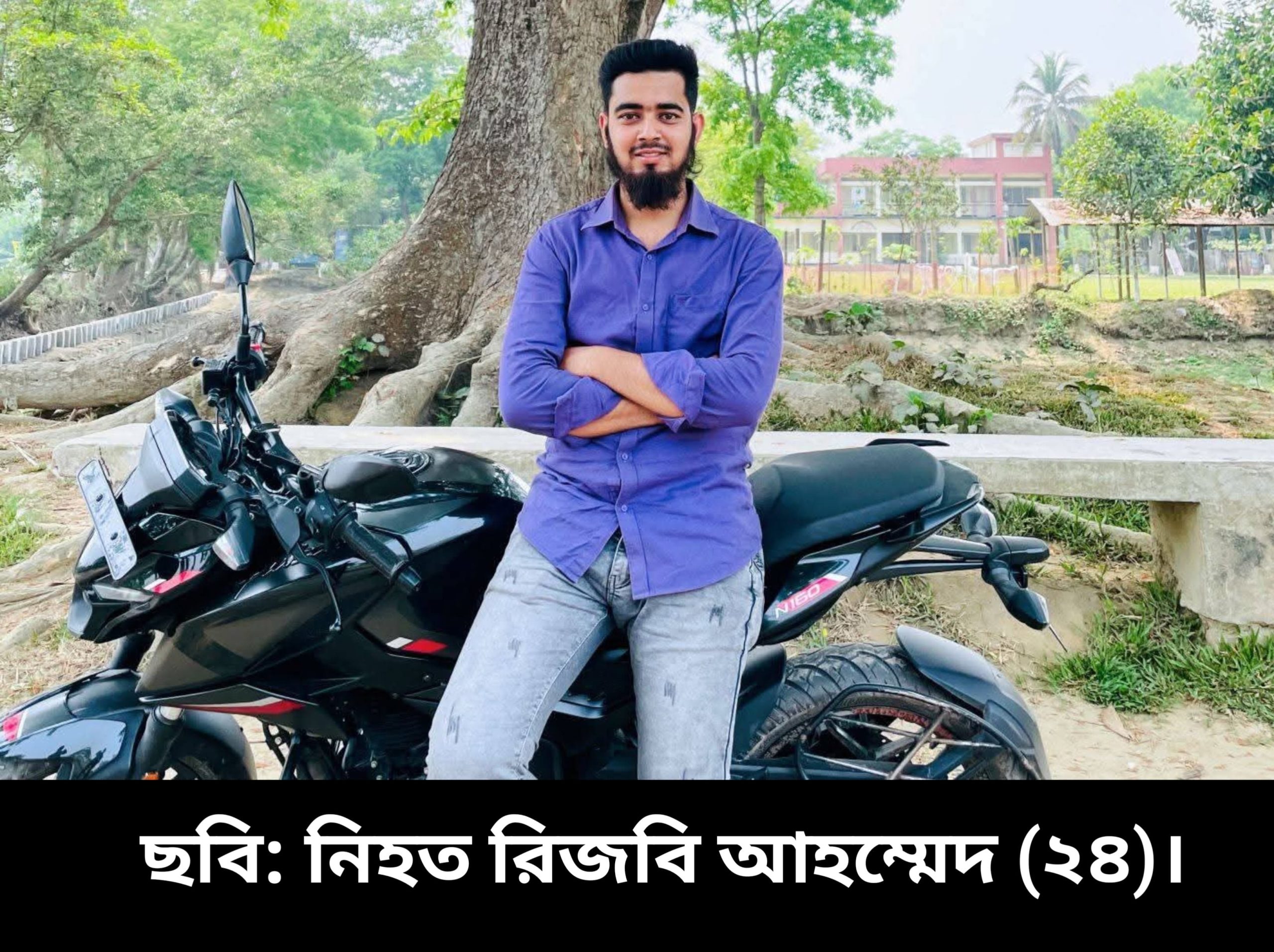 পুলিশ ও প্রত্যক্ষদর্শী সূত্রে জানা গেছে, চাচা-ভাতিজা মোটরসাইকেলে করে পুলেরঘাট বাজার থেকে বাড়ি ফিরছিলেন। পথিমধ্যে ব্রিজের উপর ওঠার সময় বিপরীত দিক থেকে আসা দ্রুতগতির একটি গাছবোঝাই টমটমের সঙ্গে মুখোমুখি সংঘর্ষ হয়। এতে ঘটনাস্থলেই মারা যান রিজবি। গুরুতর আহত অনিককে স্থানীয়রা উদ্ধার করে ভাগলপুর জহুরুল ইসলাম মেডিকেল কলেজ হাসপাতালে ভর্তি করেন।