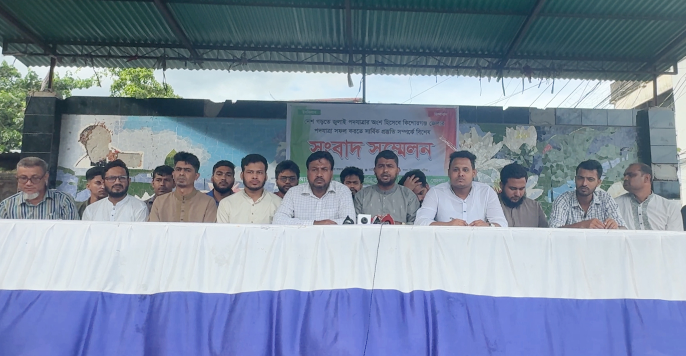 জাতীয় নাগরিক পার্টি (এনসিপি) এর দেশ গড়ার প্রত্যয়ে ঘোষিত ‘জুলাই পদযাত্রা’র অংশ হিসেবে আগামীকাল শনিবার (২৫ জুলাই) কিশোরগঞ্জে পদযাত্রা ও সমাবেশ অনুষ্ঠিত হবে। এ উপলক্ষে আজ শুক্রবার (২৬ জুলাই) বিকেলে শহরের আখড়াবাজার মুক্তমঞ্চে এক সংবাদ সম্মেলনের আয়োজন করে জেলা এনসিপি।