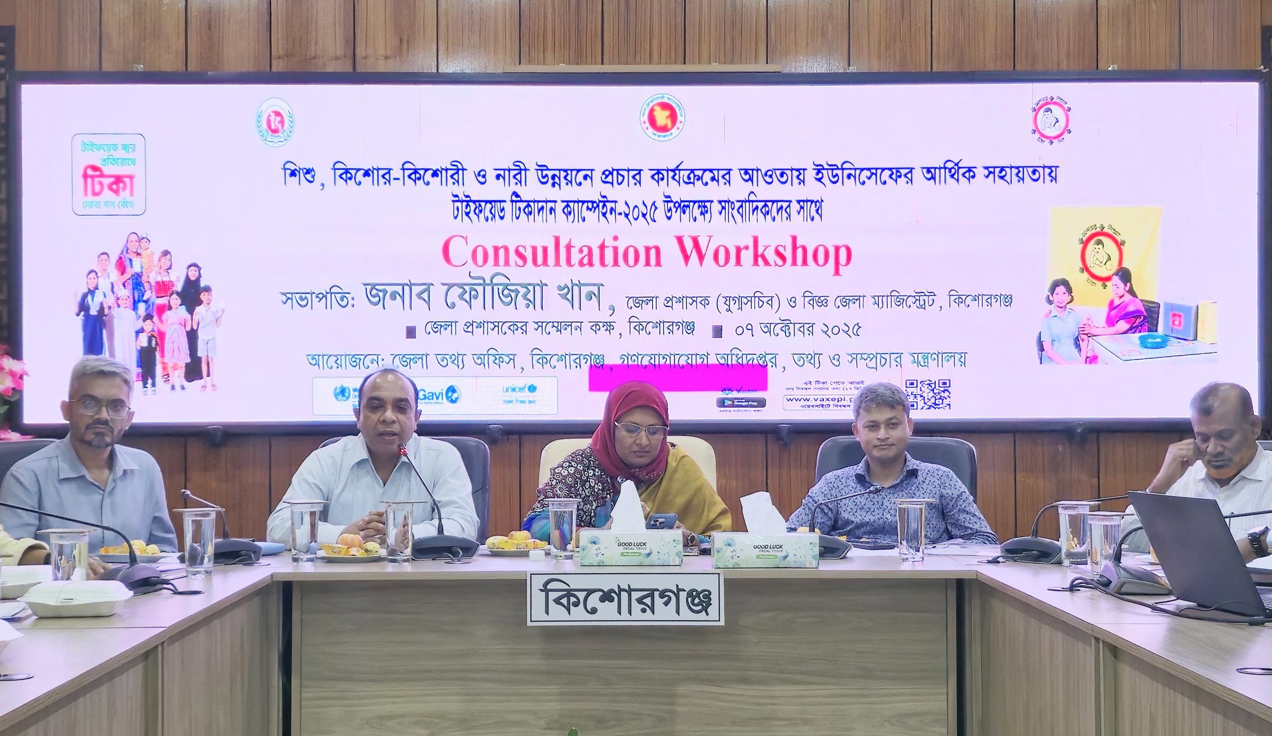 আগামী ১২ অক্টোবর থেকে দেশব্যাপী টাইফয়েড টিকাদান কর্মসূচি সফলভাবে বাস্তবায়নের লক্ষ্যে কিশোরগঞ্জে গণমাধ্যমকর্মীদের সঙ্গে কনসালটেশন ওয়ার্কশপ অনুষ্ঠিত হয়েছে।